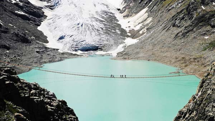 Η Trift Bridge, όπως ονομάζεται, είναι μία από τις πιο θεαματικές πεζογέφυρες των Άλπεων, μήκους 170 μέτρων, η οποία διασχίζει το φαράγγι πάνω από τη λίμνη Triftsee, στην περιοχή Gadmen της Ελβετίας, προσφέροντας μοναδικές εικόνες στους τολμηρούς πεζοπόρους.