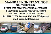 Η επιχείρηση Χονδρικού Εμπορίου και Διανομών του κου Μανίκα Κωνσταντίνου, έχει έδρα στο Αγιο Κωνσταντίνο Αγρινίου και λειτουργεί εδω και είκοσι χρόνια. Τα είδη που εμπορεύεται είναι κυρίως Πρώτες ύλες και Είδη Κουλουροποιείας καθώς και Είδη Ζαχαροπλαστικής, Ζαχαρώδη και Λοιπά Συναφή Προϊόντα. Στους…